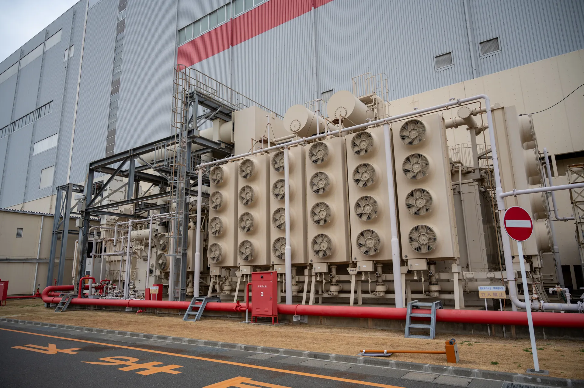 変電設備。地下にケーブルがあるため、鉄塔はありません。